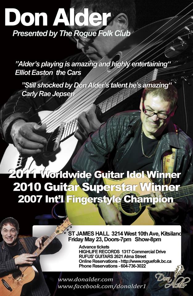 Upcoming this friday, May 23rd, 2014: Don Alder's "Unusual Guitars" concert, presented by the Vancouver Rogue Folk Club. Door: 07:00 PM Show: 08:00 PM